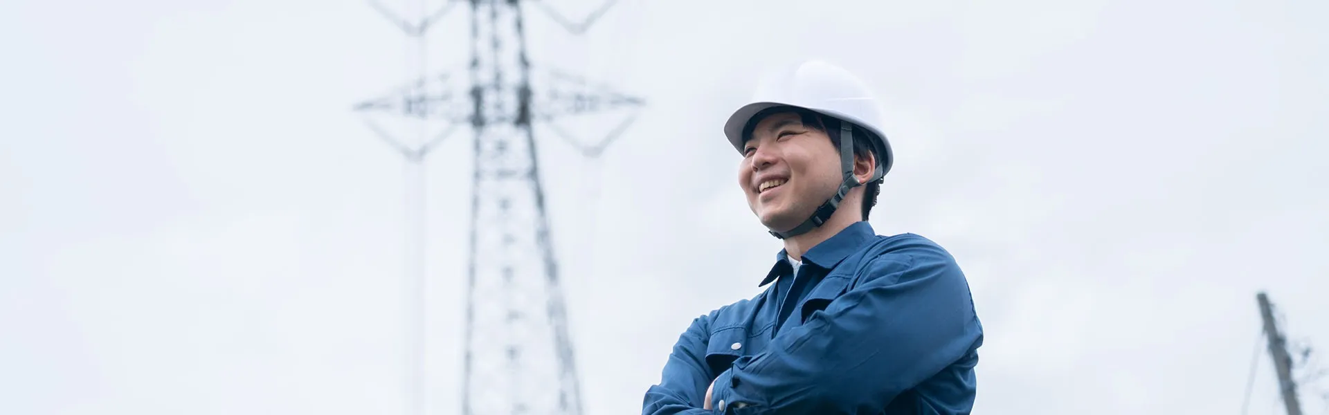 鉄塔に送電線を張るための架線工事や鉄塔の組立工事など大規模な工事を手掛けており、空を舞台に働く鳶職に近い働き方をしています。これからもより多くのニーズにお応えできるよう正社員を募集し、丁寧な研修で次世代の人材を育成できるよう取り組んでおります。出張が多く、東日本を中心に様々なエリアで活躍できます。